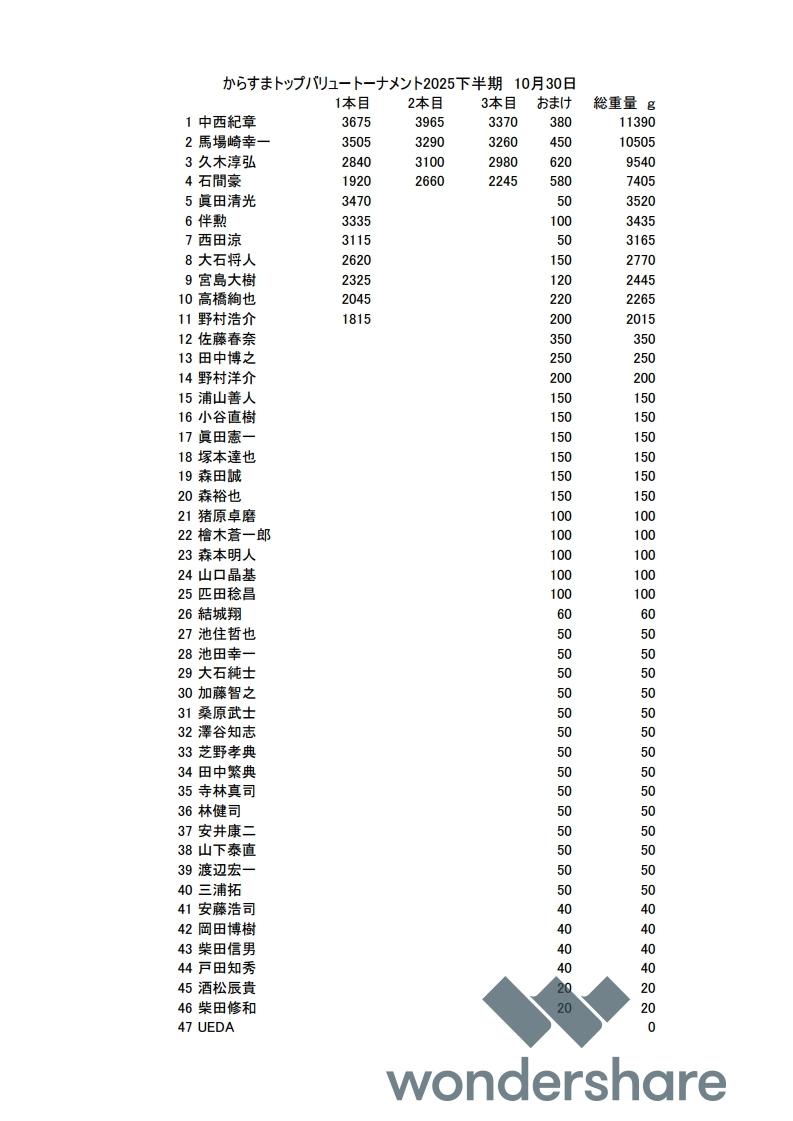 からすまトップバリュトーナメント2025下半期(7月~11月)